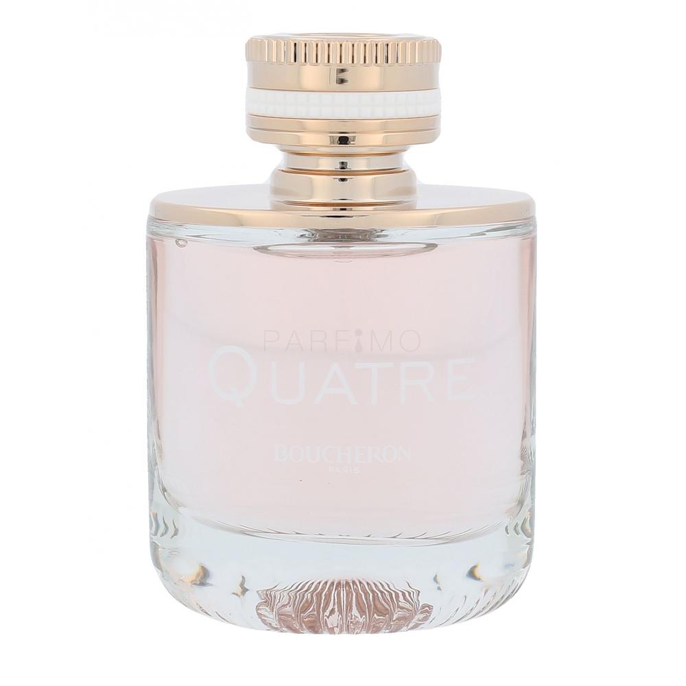 Aroma apei parfumate Boucheron Quarte, care a văzut lumina lumii în 2015, poartă numele colecției de bijuterii. Scopul acestei ape parfumate a fost de a prezenta un parfum care să atragă și femeile tinere. Şi uite aşa a apărut. Parfum excepțional care vă va încânta cu compoziția sa de flori și fructe, care este completată de aroma caldă a lemnului. Designul sticlei și-a găsit inspirația în inelul din colecția Quarte, acest inel fiind o celebrare a unuia dintre cele mai romantice orașe din lume — Paris. Parfumul vă va încânta cu eleganța, feminitatea și originalitatea sa.