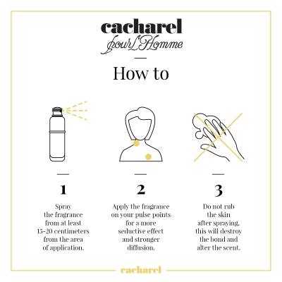 Cacharel Pour Homme apa de toaletă este potrivită atât pentru utilizare zilei, cât și pentru seara. Este potrivit pentru un bărbat care este instabil, îi place libertatea, dar în același timp este un erou încrezător în sine care poate face față fiecărei situații. Treziți-vă în armonie cu Cacharel Pour Homme. El vă va însoți în pelerinaj ca partener potrivit, care vă stă mereu alături.