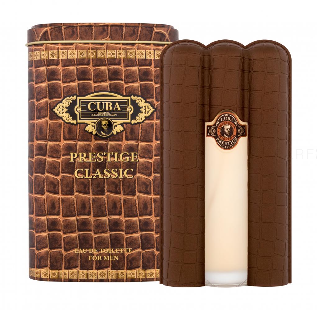 parfumul apei de toaletă pentru bărbați Cuba Prestige** este excepțional nu numai să se uite, ci și cu un singur miros. Designul sticlei, care descrie trei trabucuri cubaneze, ascunde un parfum plin de energie, prospețime și acorduri aromatice. Completați stilul dvs. distinctiv cu parfumuri care vă vor permite să vă evidențiați și să vă evidențiați punctele forte.