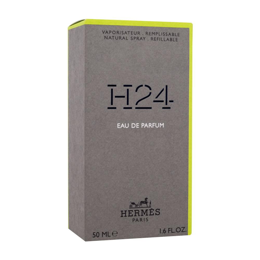 Hermes H24 Eau de Parfum urmează apei de toaletă omonime din 2021, o compoziție parfumată a viitorului definită de salvie, narcisă, lemn de trandafir roz și un acord metalic seducător. Apa de parfum (Eau de Parfum) conține 8-15% din compoziția parfumului în alcool concentrat și este mai intensă decât apa de toaletă (Eau de Toilette, 4-8%). Apa de parfum este mai probabil să fie folosită seara și la ocazii formale, în timp ce apa de toaletă este un accesoriu obișnuit în timpul zilei pentru muncă și alte activităti. Parfumul apei de toaletă Hermes H24 cu rezerva reîncărcabila formează un duo excelent, complementate fiind de cosmeticele pentru bărbați care le însoțesc.