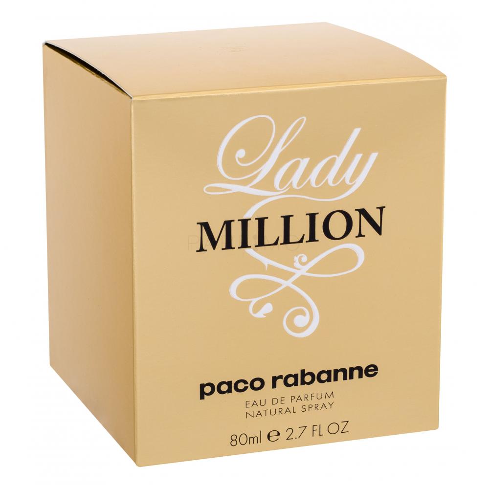 La doi ani după lansarea parfumului foarte reușit pentru bărbați1 milion marca Paco Rabanne, a fost introdusă și o versiune feminină numită Lady Million. Parfumul este inspirat de aur și bogăție. A fost mai mult decât clar că noul parfum pentru femei ar trebui să fie la fel de carismatic ca parfumul pentru bărbați, cu o semnătură puternică, dar fără o conexiune evidentă între ingrediente. Femeia care poartă parfumul „Lady Million**” este uimitoare și întotdeauna seducătoare. Ea își exprimă caracterul său de foc și senzualitatea periculoasă.